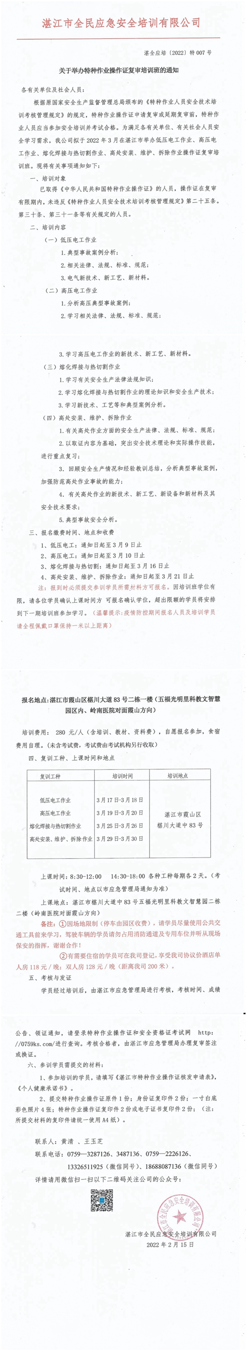 2022年3月17日-3月30日低壓電工、高壓電工、熔化焊接與熱切割作業(yè)、高處作業(yè)復(fù)審培訓(xùn)班通知