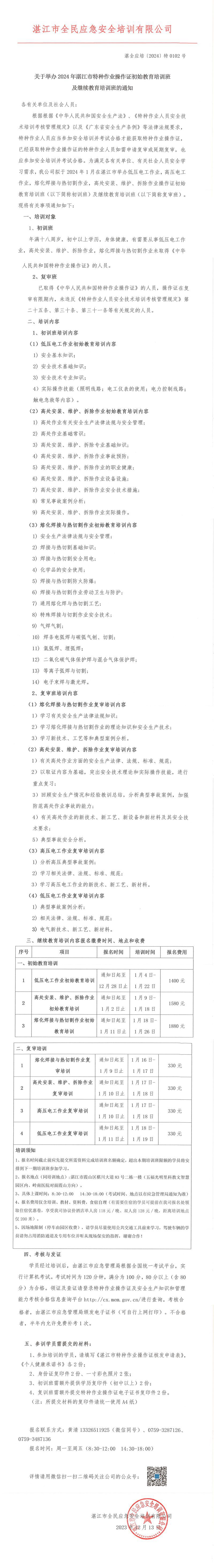 2024年1月低壓電工、高壓電工、熔化焊接與熱切割作業(yè)、高處作業(yè)初始教育培訓(xùn)班及繼續(xù)教育培訓(xùn)班的通知