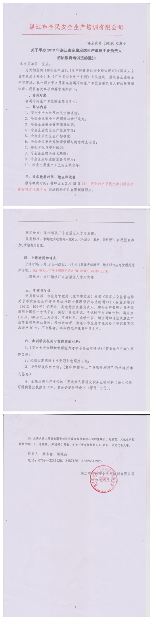2019年3月3月18-23日金屬冶煉生產(chǎn)單位初始教育班通知
